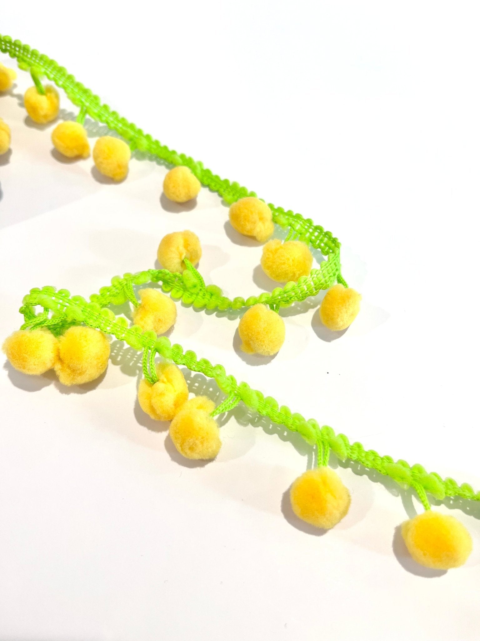 Two Tone Pom Pom Trim - 30mm - Yellow and Green is backordered and will ship as soon as it is back in stock.