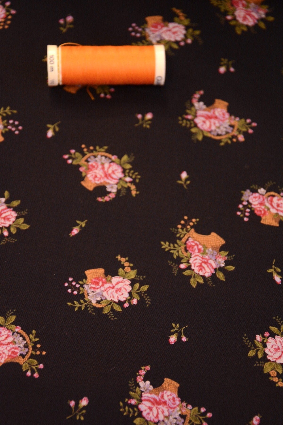 Black Flower Basket - Floral Collection Antique Rose - Lecien