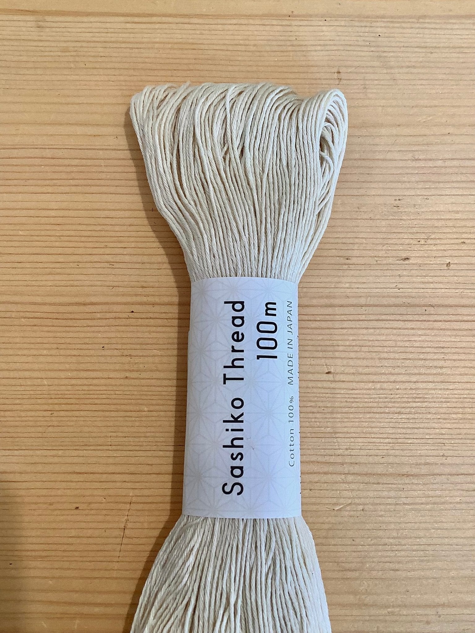 Ivory cotton sashiko thread - 100m skein. 100% cotton. Stitching so much that your standard skeins keep running out too fast? This 100 metre skein is for you. In a warm ivory colour, this thread gives a softer hue than the standard bright white.