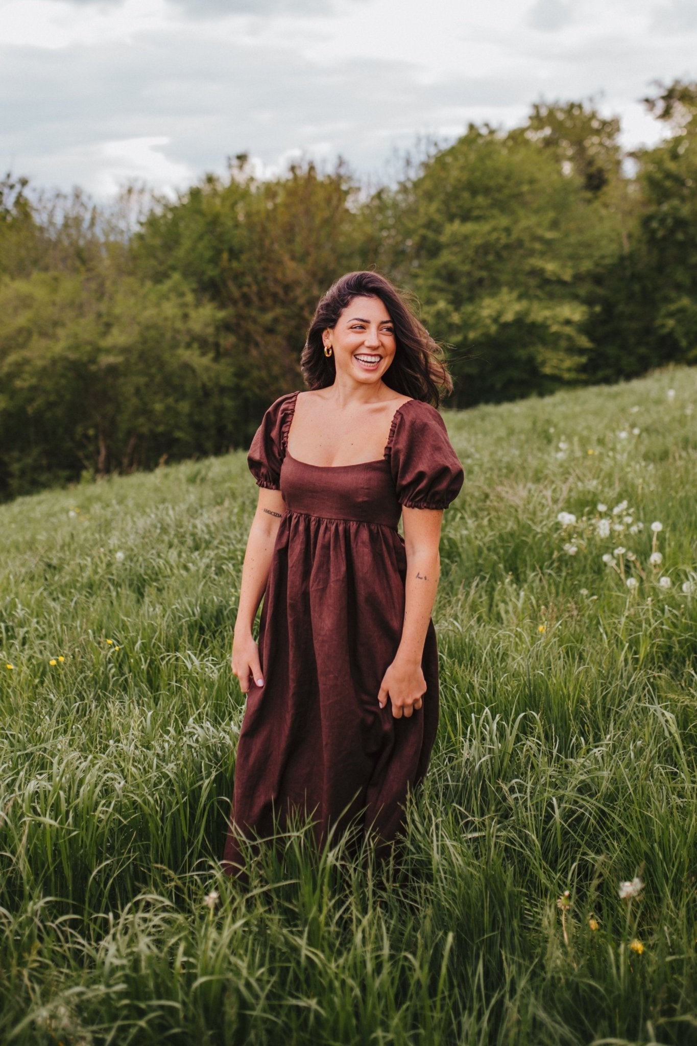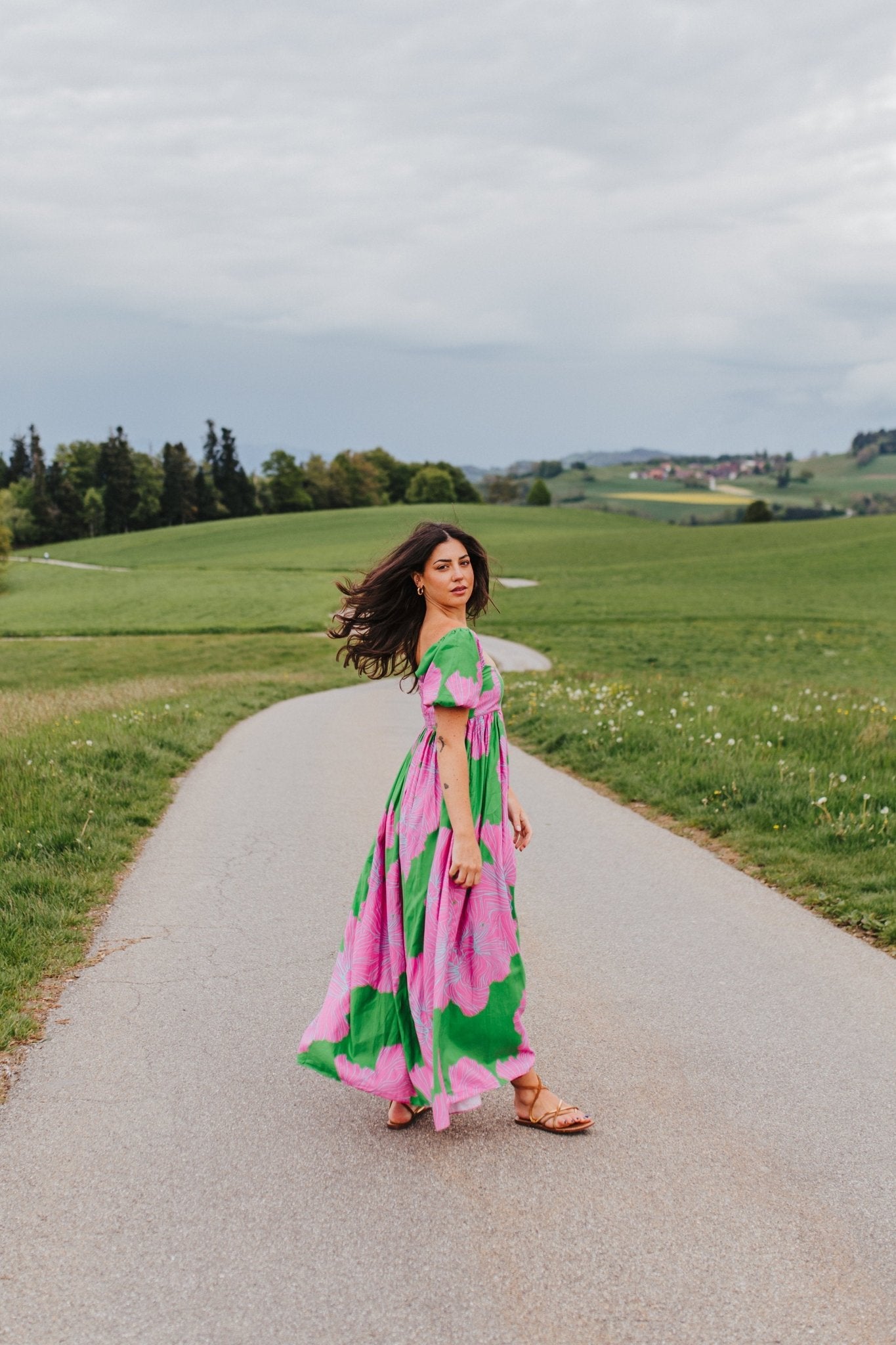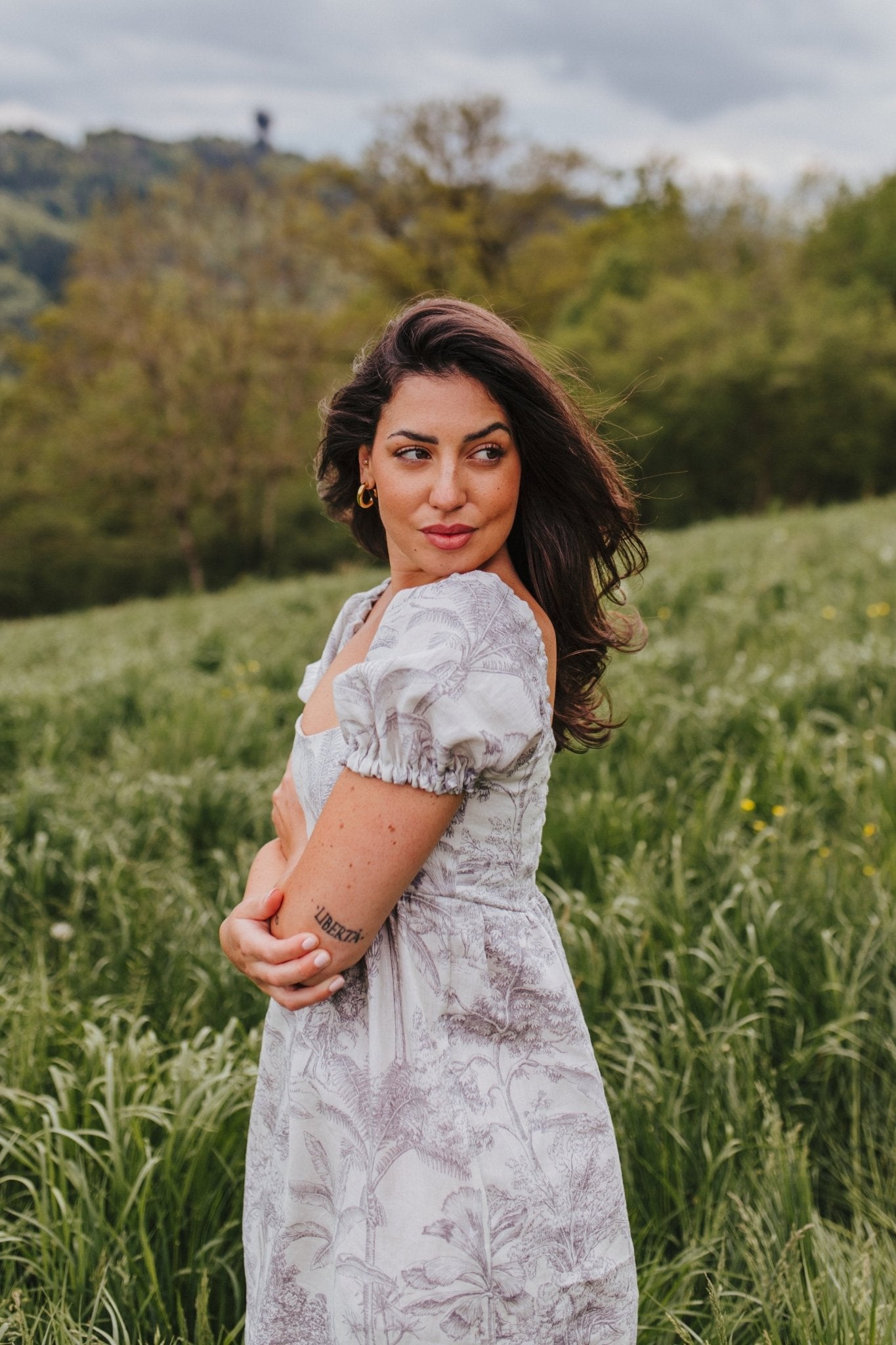 This pattern was created after watching season 2 of the famous Netflix series Bridgerton with its glamorous long Regency dresses. The Daphne Maxi Dress has a high empire waistline, is fitted over the bust, features short puff sleeves, and a long flowy skirt. This pattern is perfect for pattern hacking, as you can easily exchange the puff sleeves for straps or lengthen the puff sleeve to a ¾ sleeve. It is also very easy to shorten the skirt to a midi or mini length or even to a peplum top if desired. The bustier of the Daphne pattern with a simple gathered skirt would also look gorgeous. The options are endless.