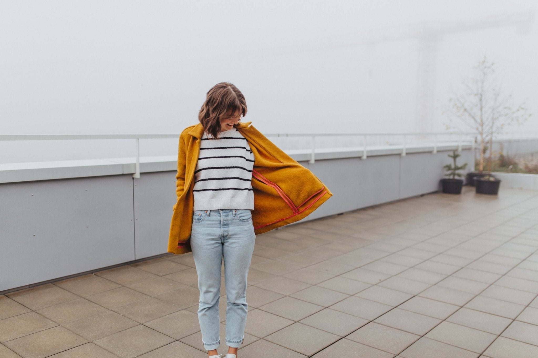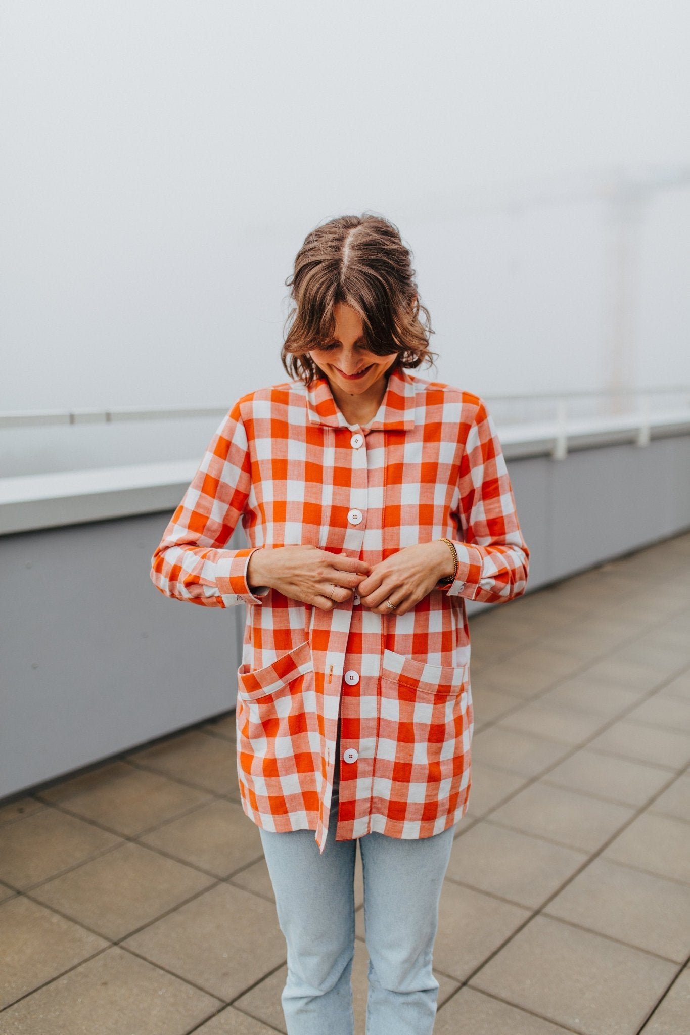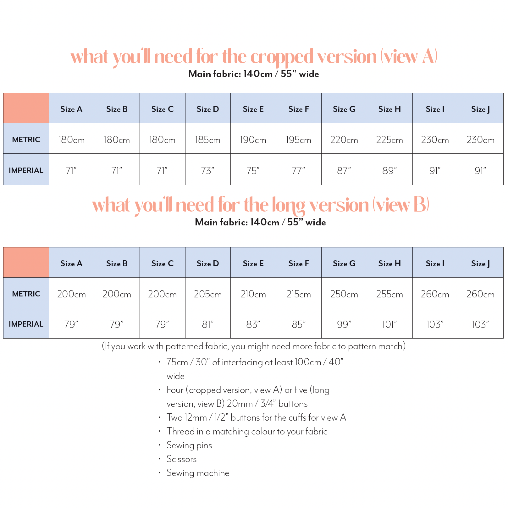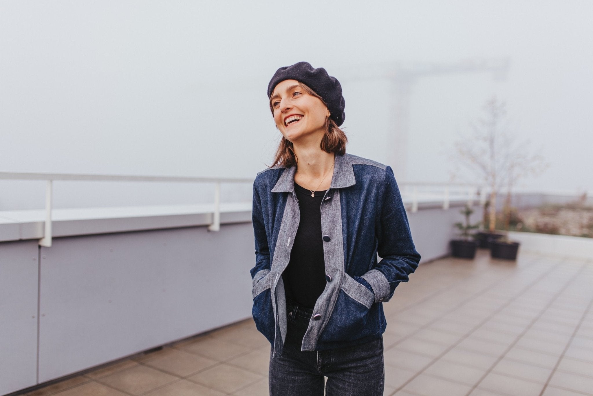 The Jameela Jacket is a cozy jacket pattern with two length options: Hip length or cropped. This jacket is a quick sew as it is unlined and has simple design lines. It features two big welt pockets at the front and a box pleat at the back. The cropped version comes with a sleeve placket and a sleeve cuff whilst the longer version features a simple sleeve hem.
