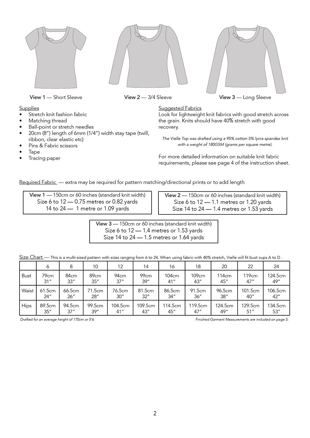 The Vielle Top was drafted using a 95% cotton 5% lycra spandex knit with a weight of 180GSM (grams per square metre).