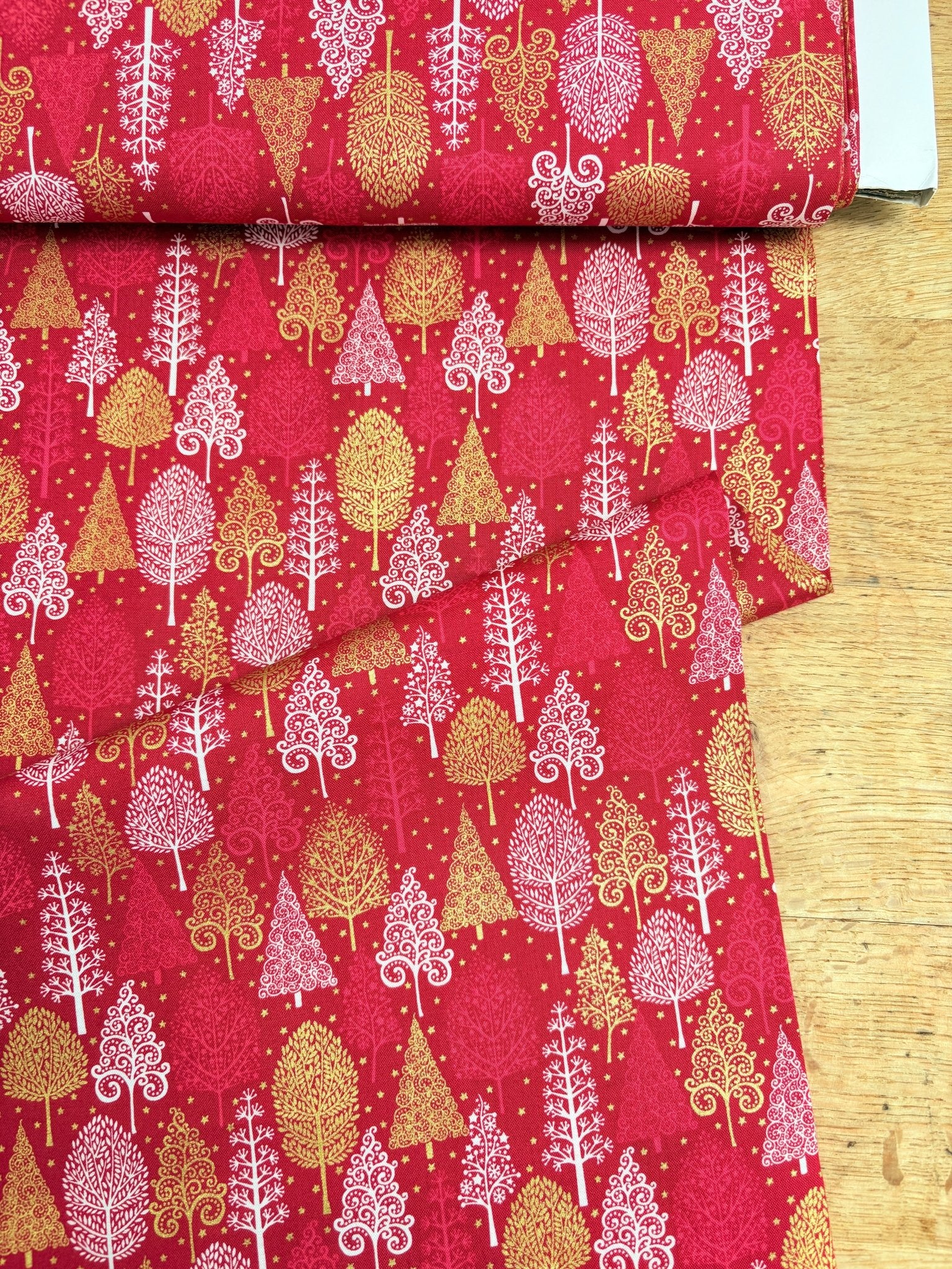 Scandi Trees Red Gold - Scandi Christmas - Christmas Fabric