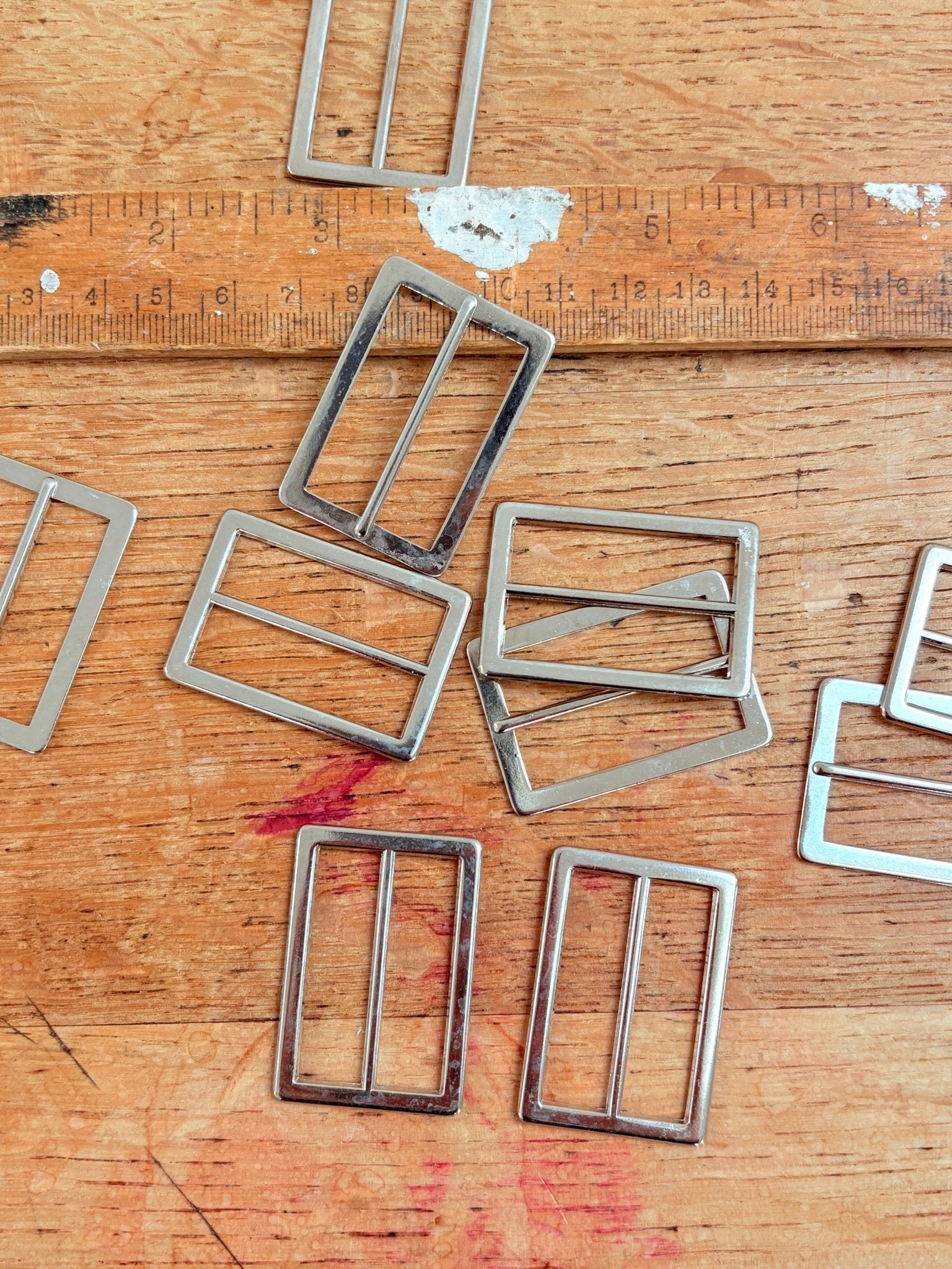Solid metal buckle available in brass and silver. This buckle is a great size for our 1.5" webbing!