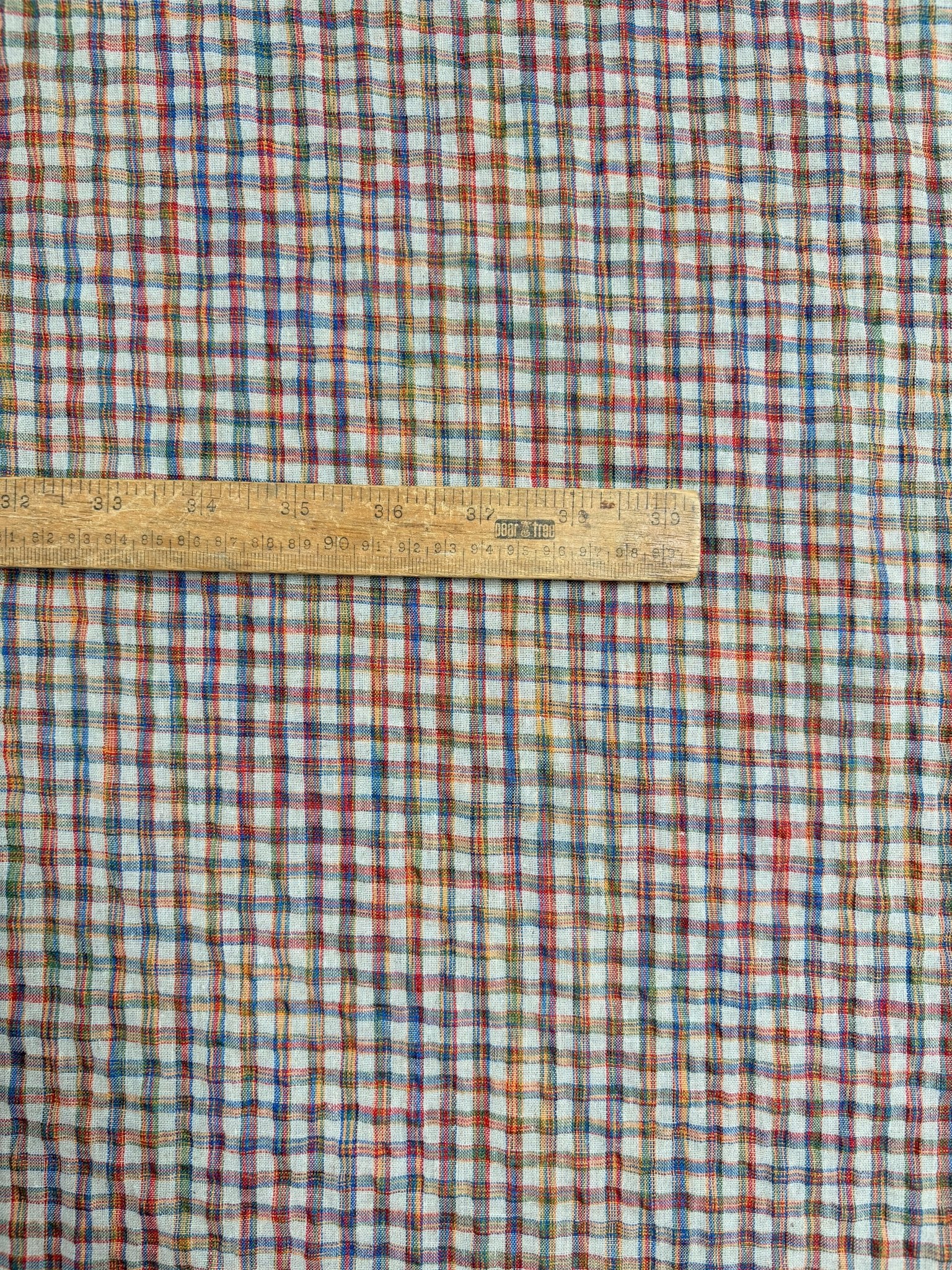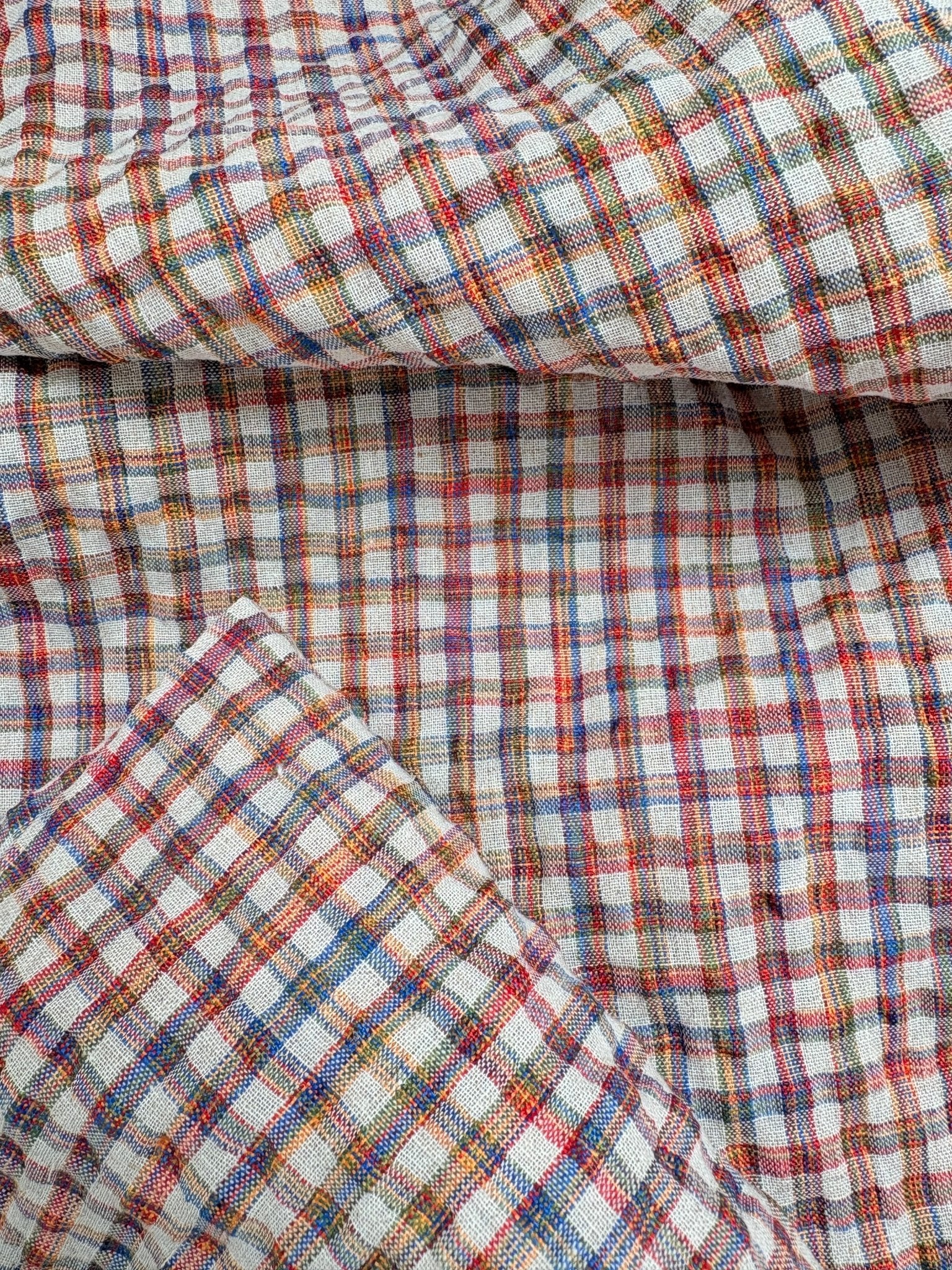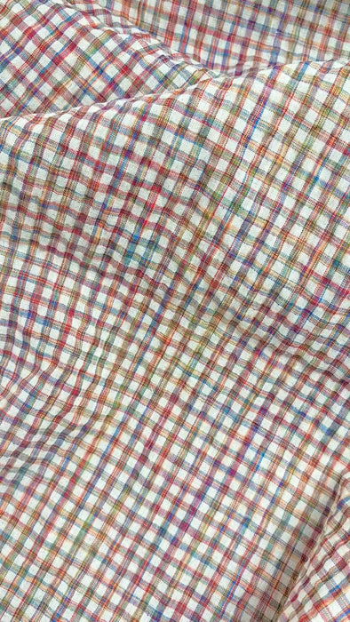 The seersucker texture makes it perfect for dressmaking and other sewing projects where you’d like a breathable, fresh, textural finish. This gingham is made up from threads of rainbow colours.