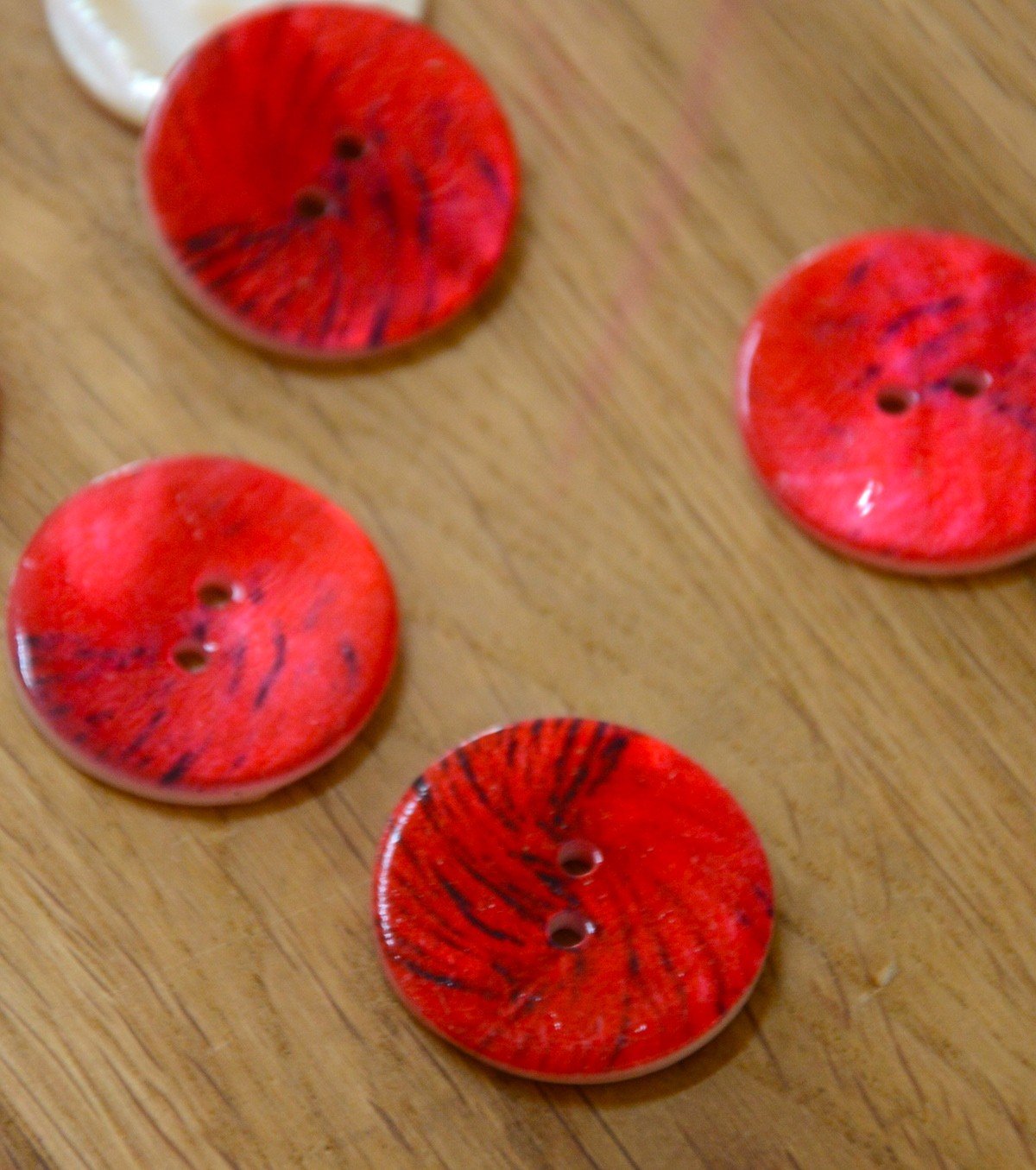 Red Wool - Printed River Pearl Button is backordered and will ship as soon as it is back in stock.