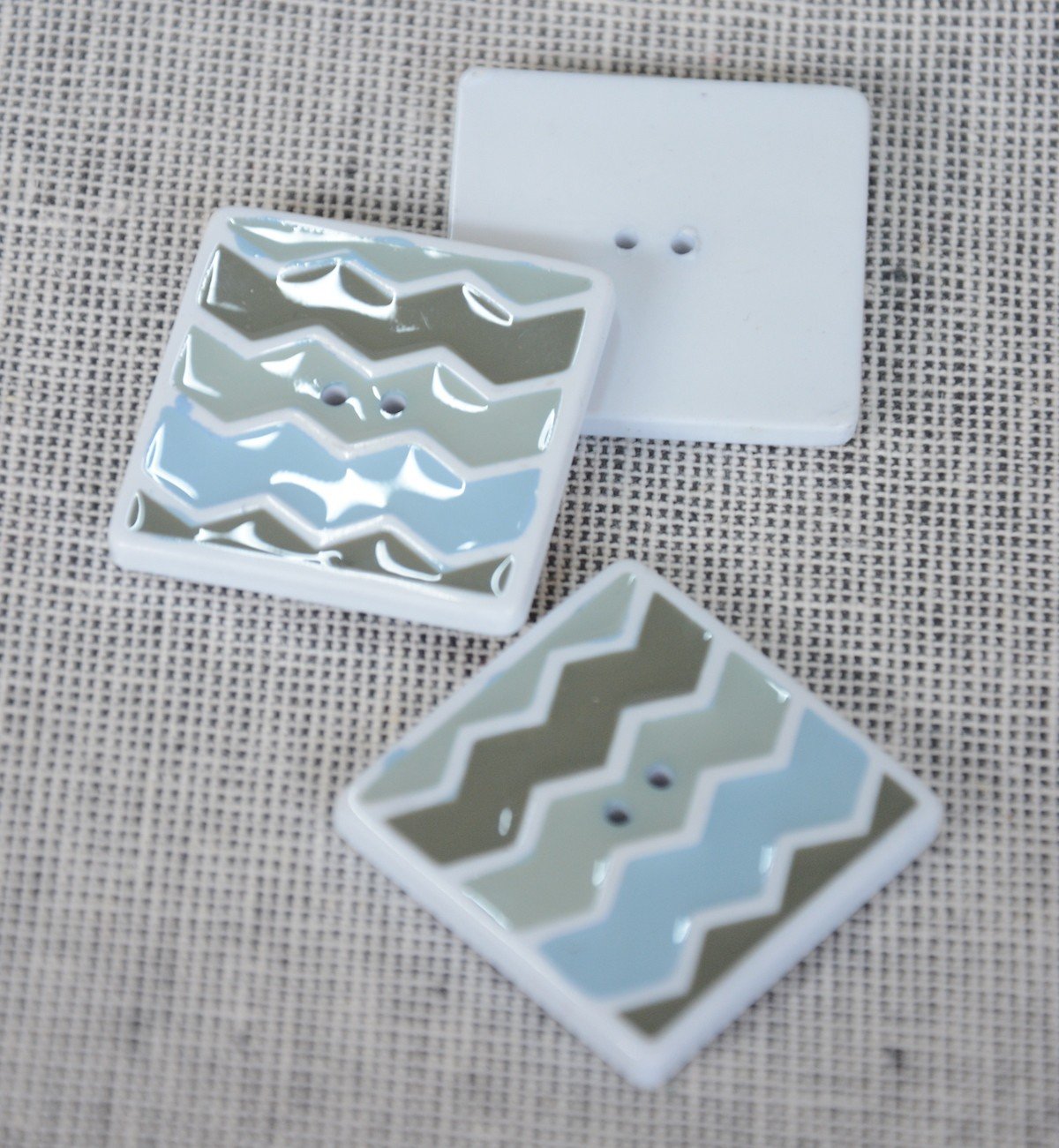 Shaded chevrons Square Button - 30mm - Blue/ Sea Green is backordered and will ship as soon as it is back in stock.