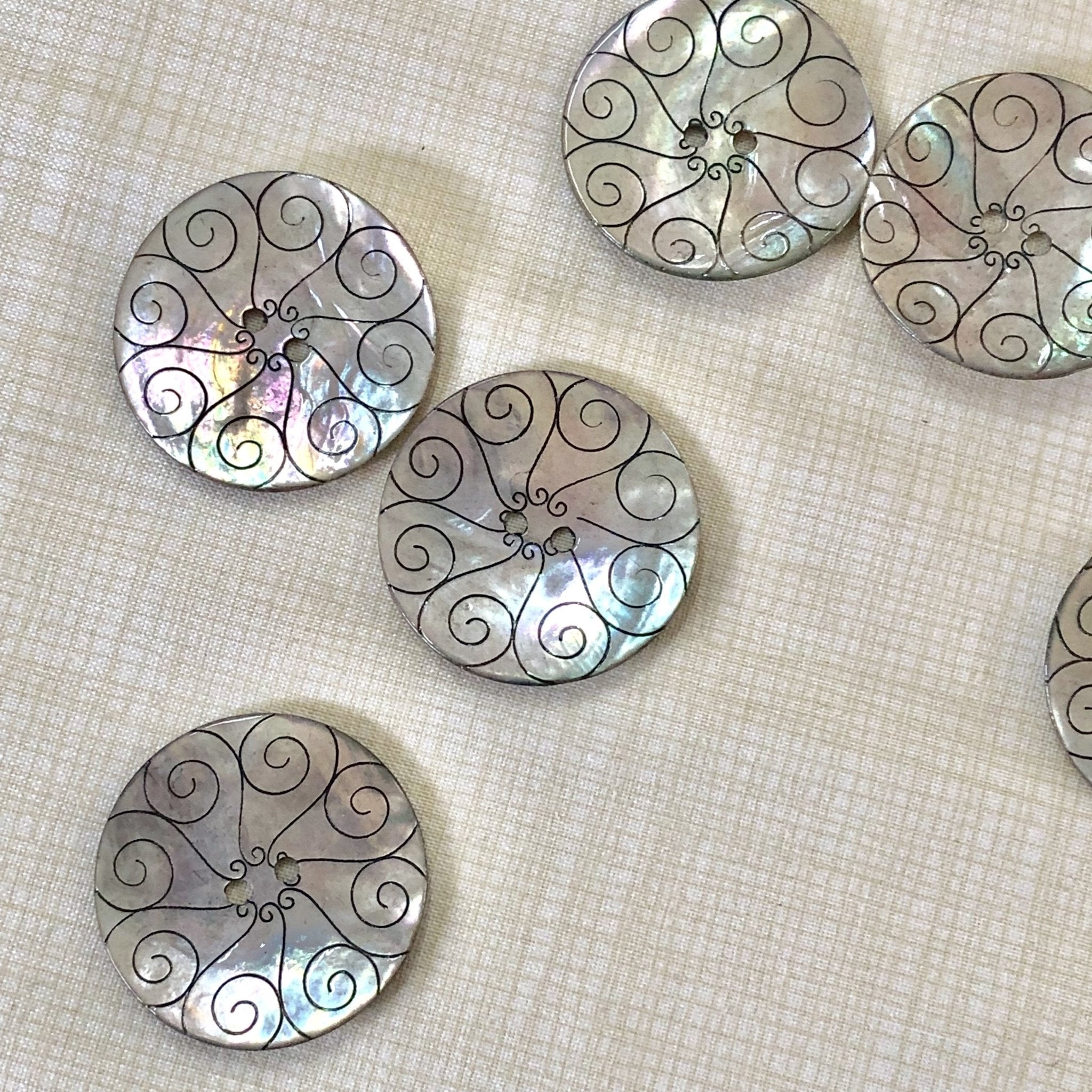 Swirls - Lasered Shell Button - 34mm is backordered and will ship as soon as it is back in stock.