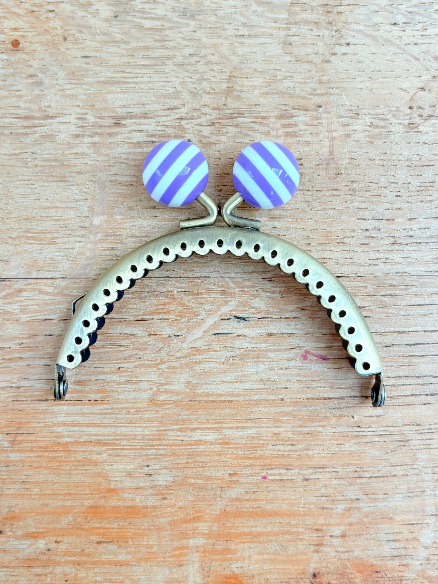 Bobble Top Purse Clasp - 8.5cm x 4cm - Sew in Antique Brass - Lilac Stripe