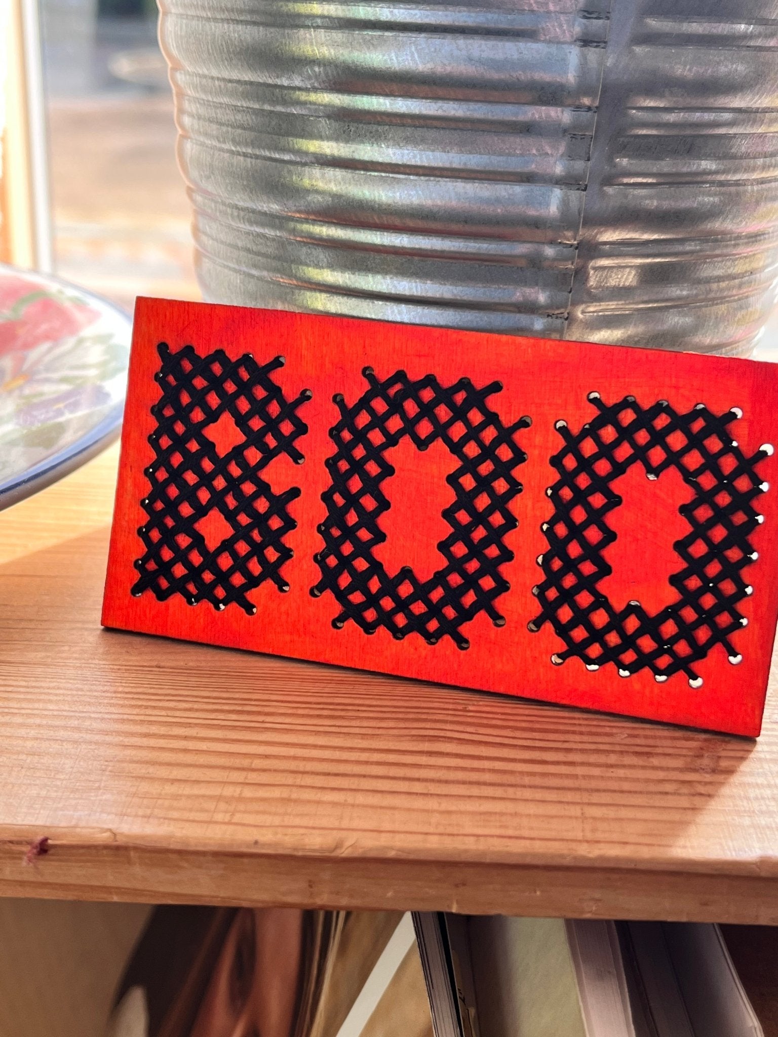 Wooden ‘Boo’ Halloween Cross Stitch - Black is backordered and will ship as soon as it is back in stock.