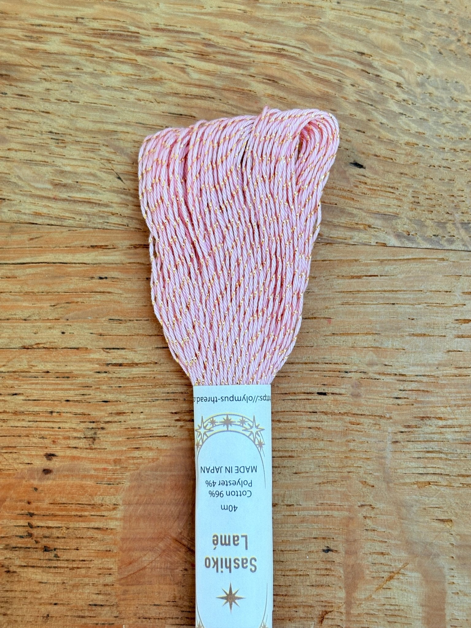 96% cotton 4% polyester lame sashiko thread. On a 40 metre skein.