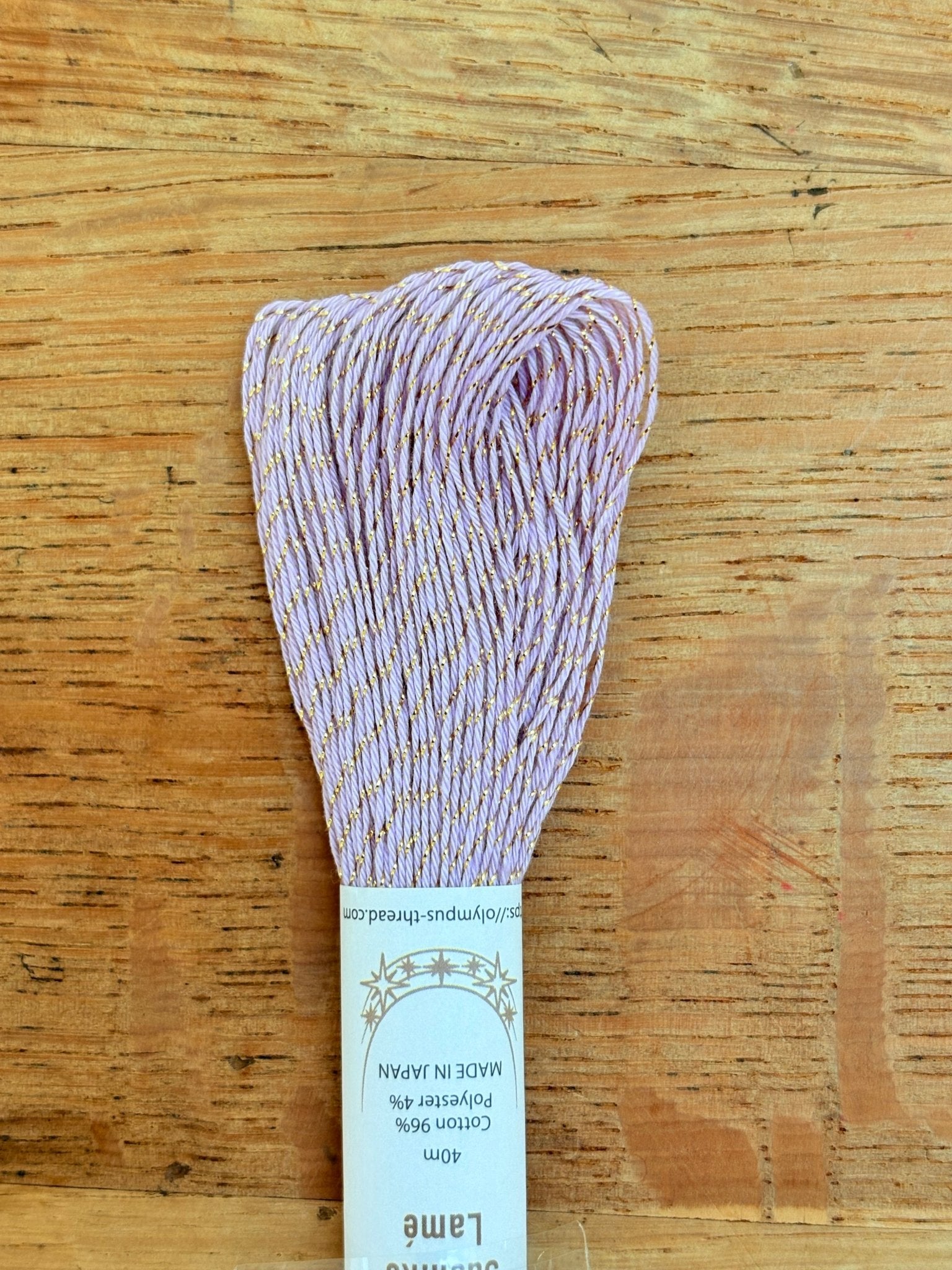 Sashiko Lame is a sashiko thread for those who want to create something a little different from the usual sashiko.  Why not add a little sparkle to your usual sashiko?  The subtle lame sparkle in this thread is not overwhelmingly glittery - it just adds a gentle glint to your work.  This hand sewing thread is single stranded and easy to sew with no shedding or twisting.  Sew up your regular sashiko projects with a little bit of glitter included.