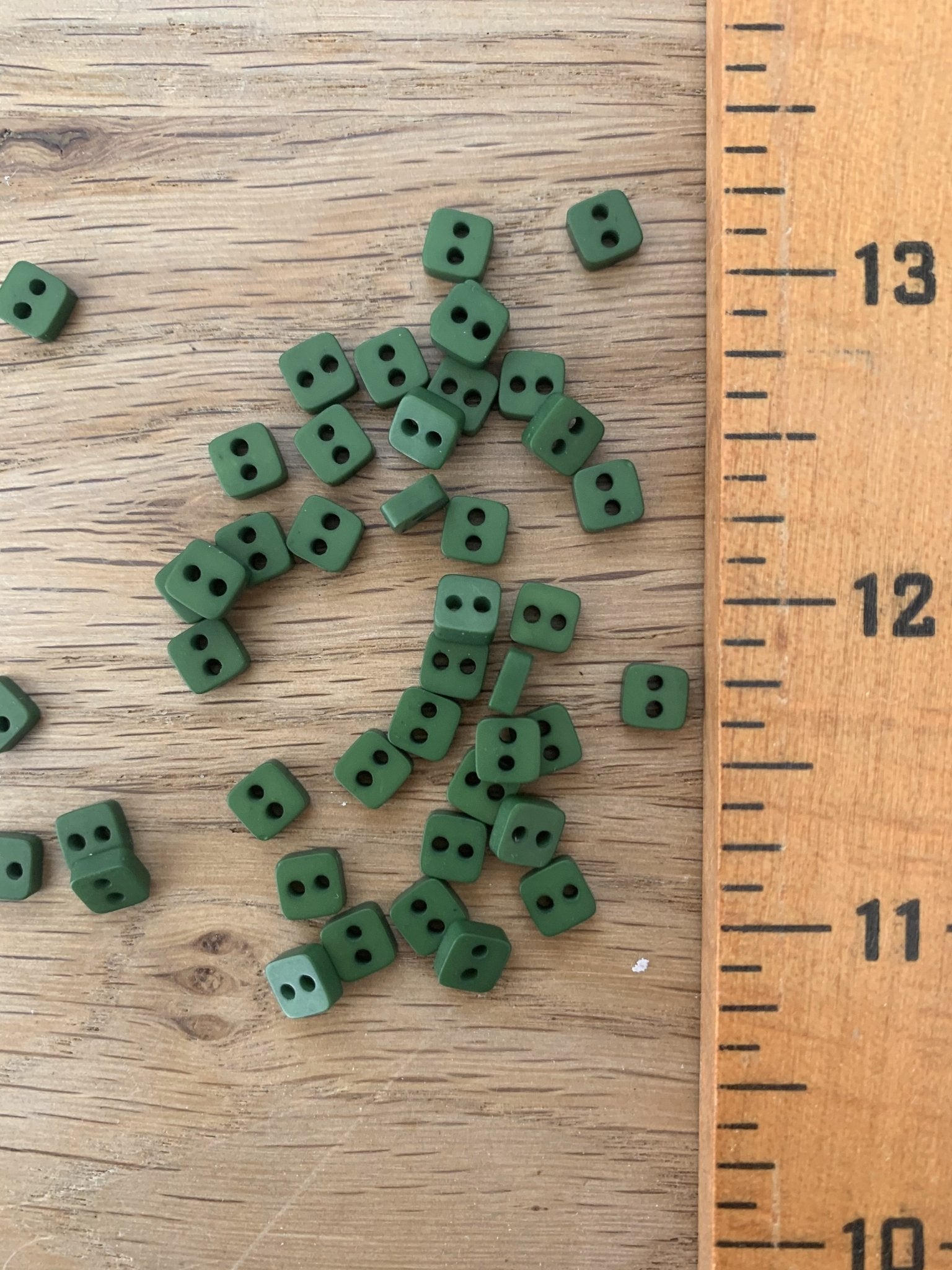 Teeny tiny Green buttons 7mm - Round is backordered and will ship as soon as it is back in stock.