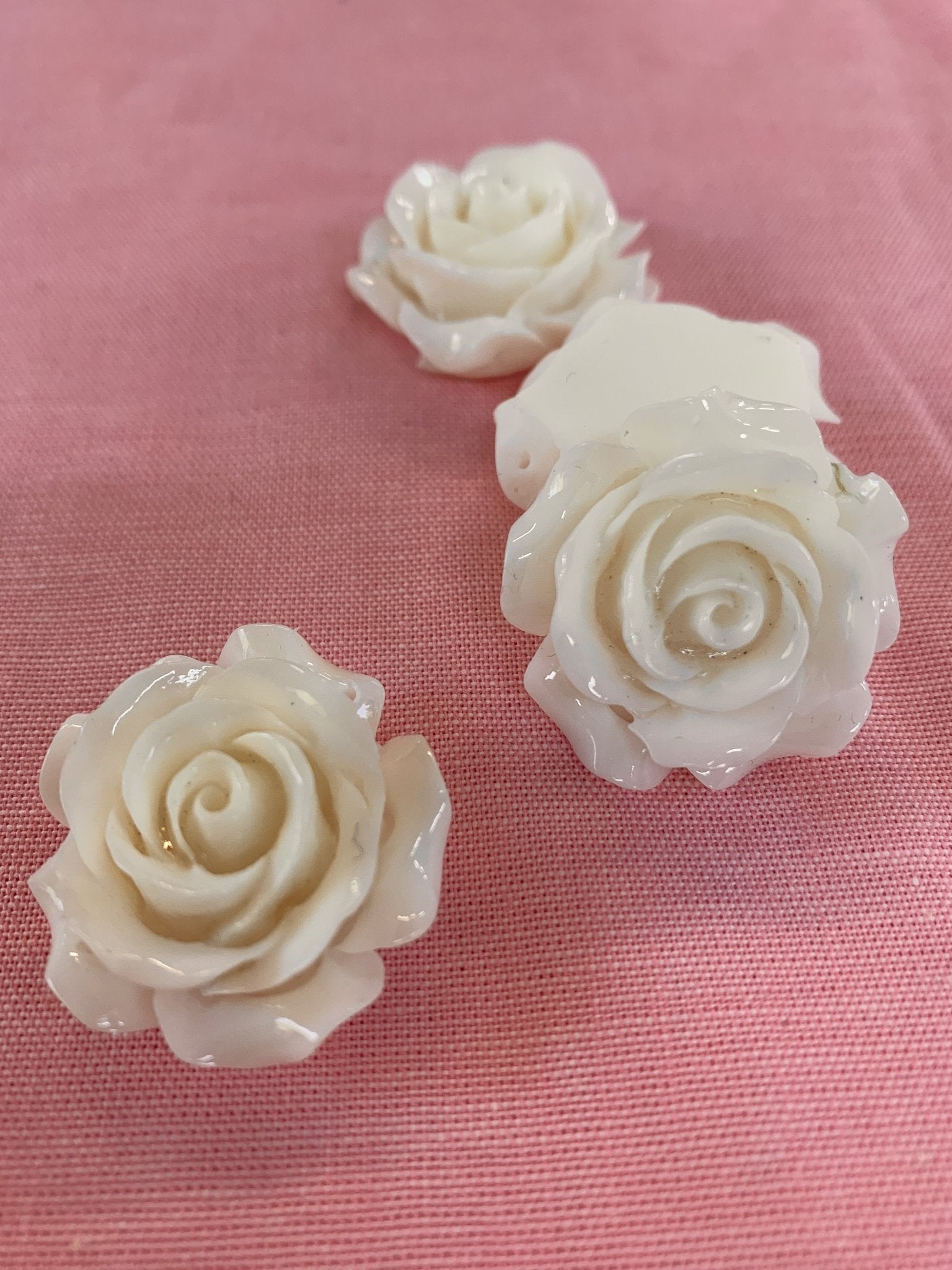 3D White Rose Cabochons - Flat - 30mm with holes is backordered and will ship as soon as it is back in stock.