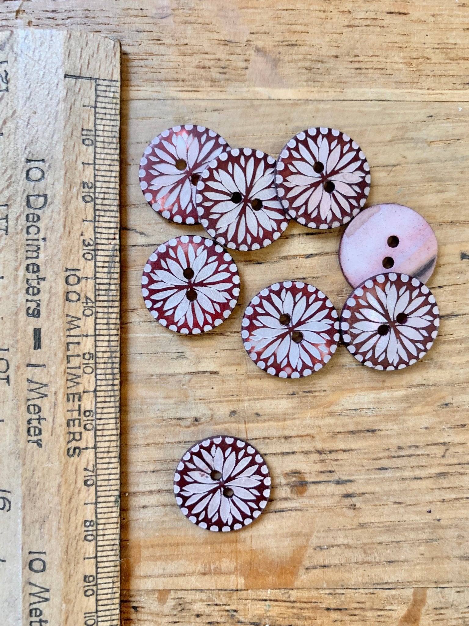 Floral Lasered River Pearl Buttons - 18mm - Burgundy