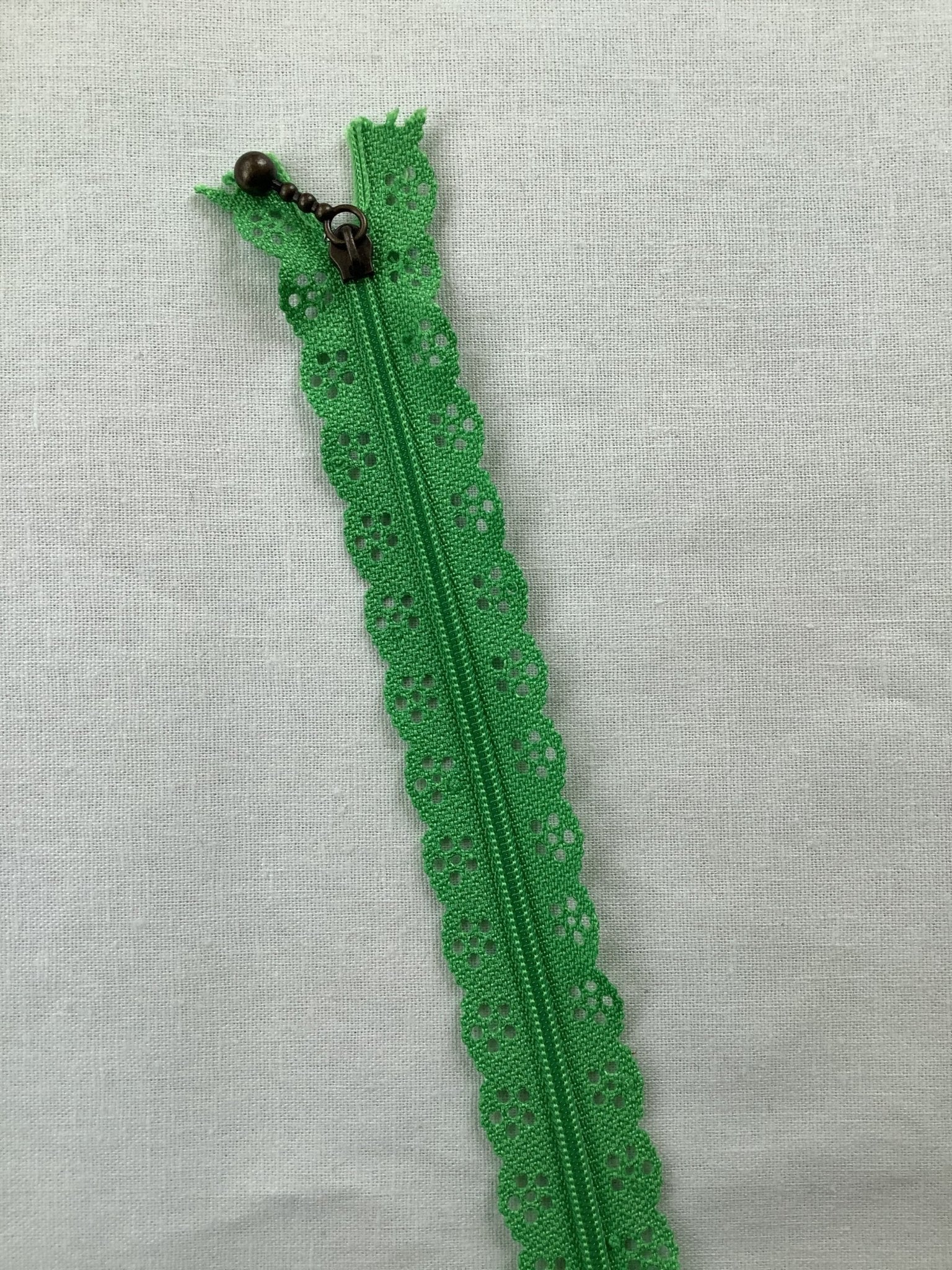Lace Edge Zip - Apple - 20cm is backordered and will ship as soon as it is back in stock.