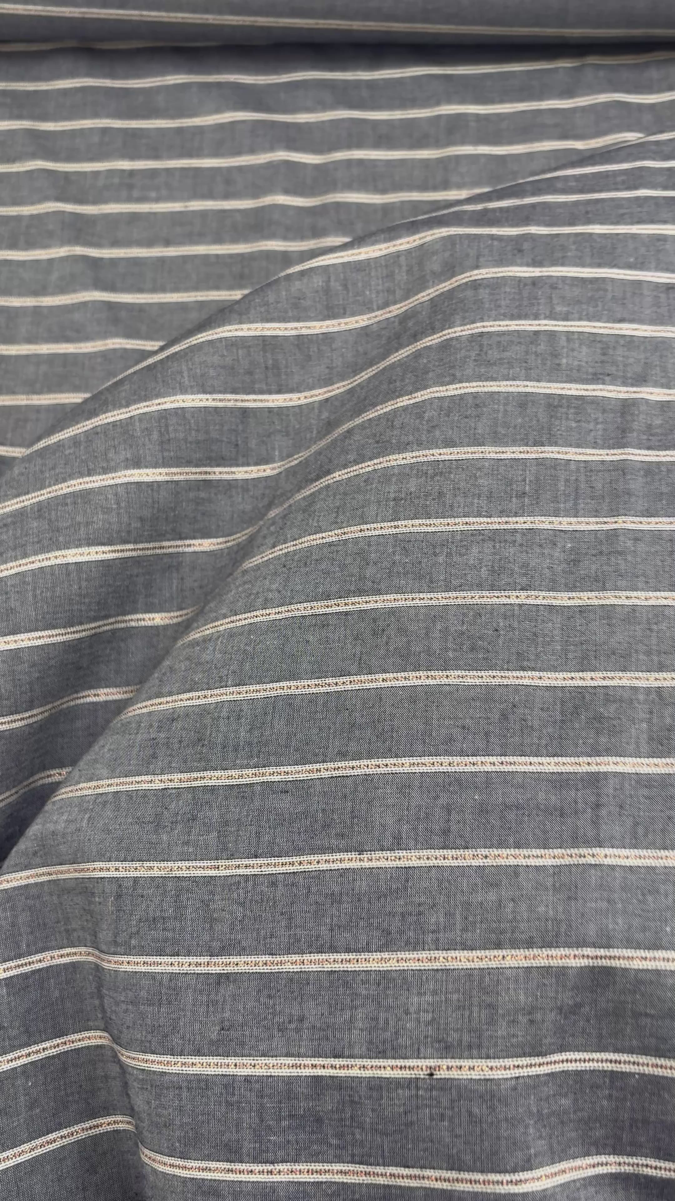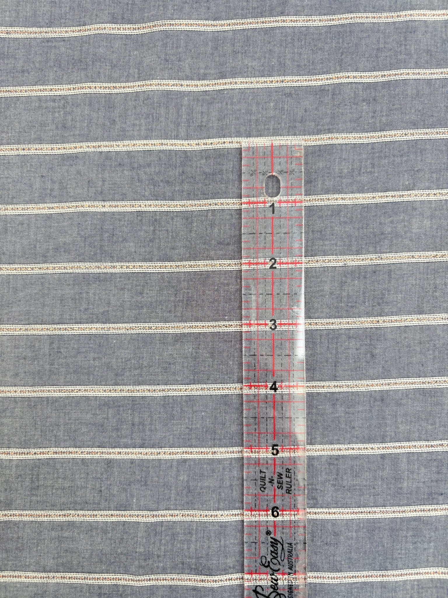 Uses: This chambray fabric light and drapy, with a gently sparkly stripe, and would make a beautiful shirt dress, like the Alder by Grainline Studio, or a floaty shirt.
