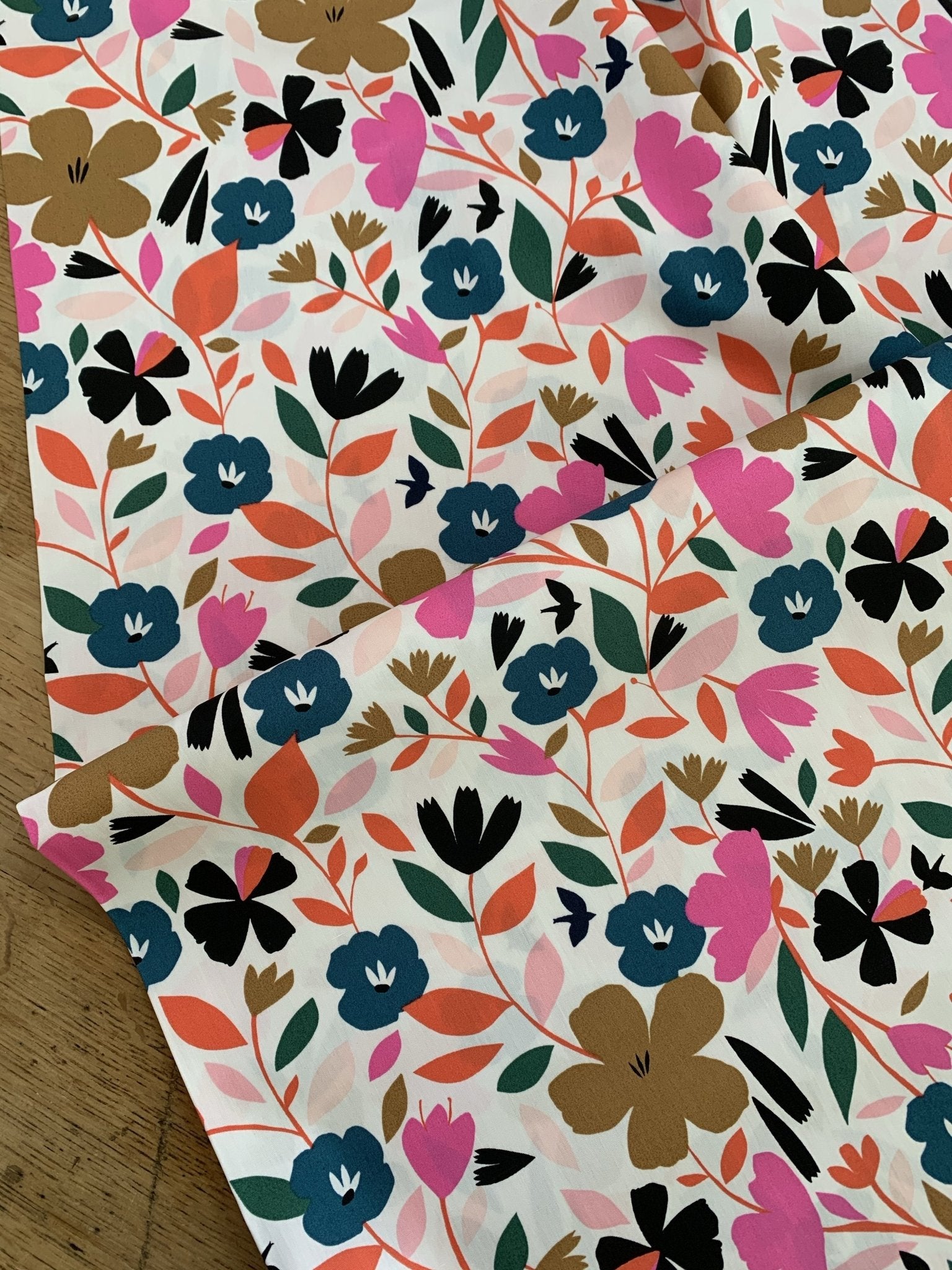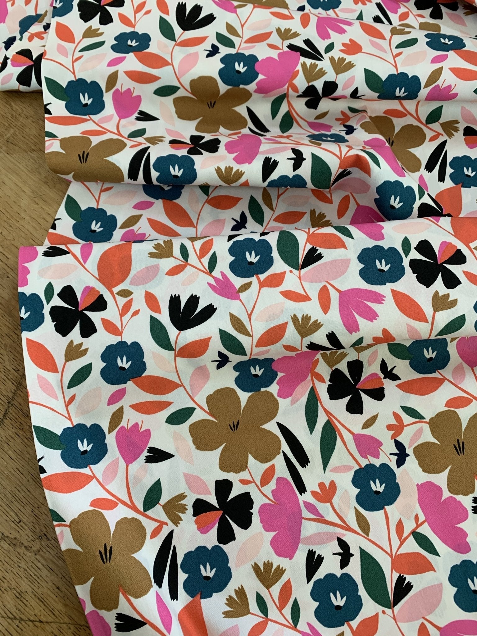 This cotton poplin has a higher thread count, a tighter weave and a crisper hand. The collection was created with dressmaking in mind, but can be used for quilts and home dec projects too!