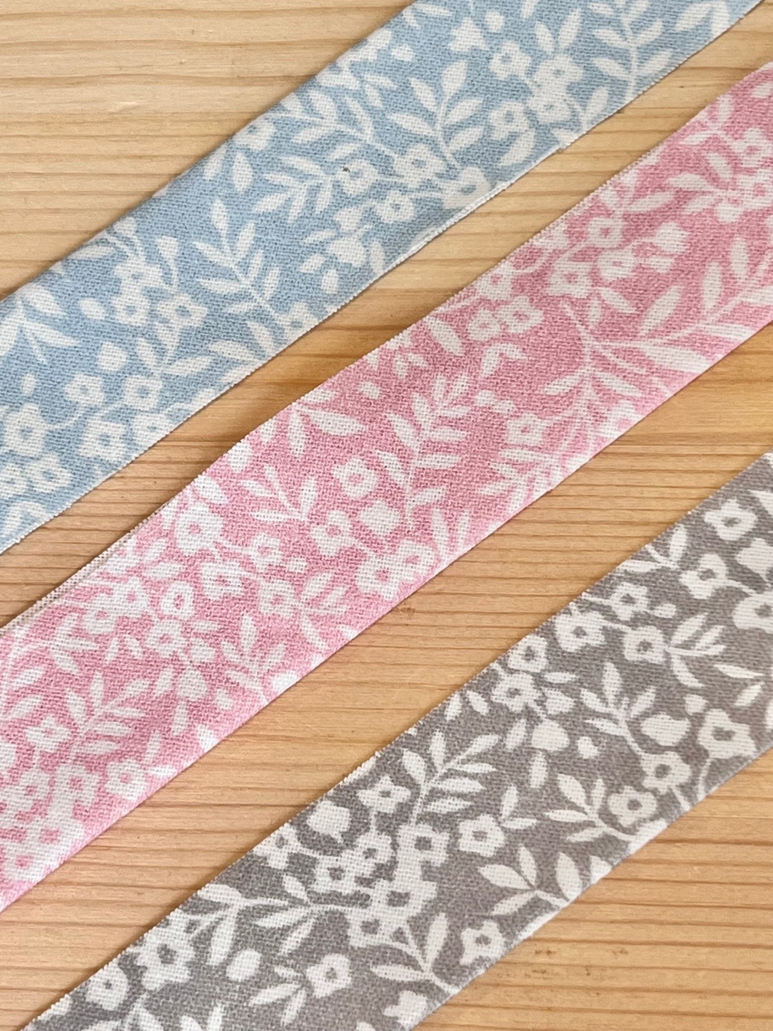 Floral Bias Binding 25mm - Pink, Blue or Grey
