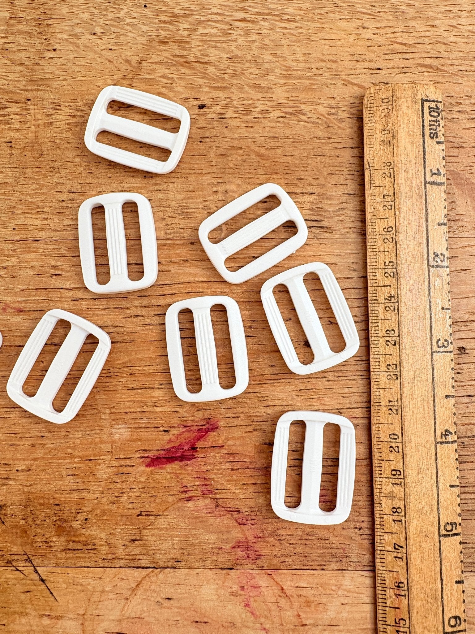 Plastic Slider 25mm - White (to match Snap Side Release Buckle) is backordered and will ship as soon as it is back in stock.