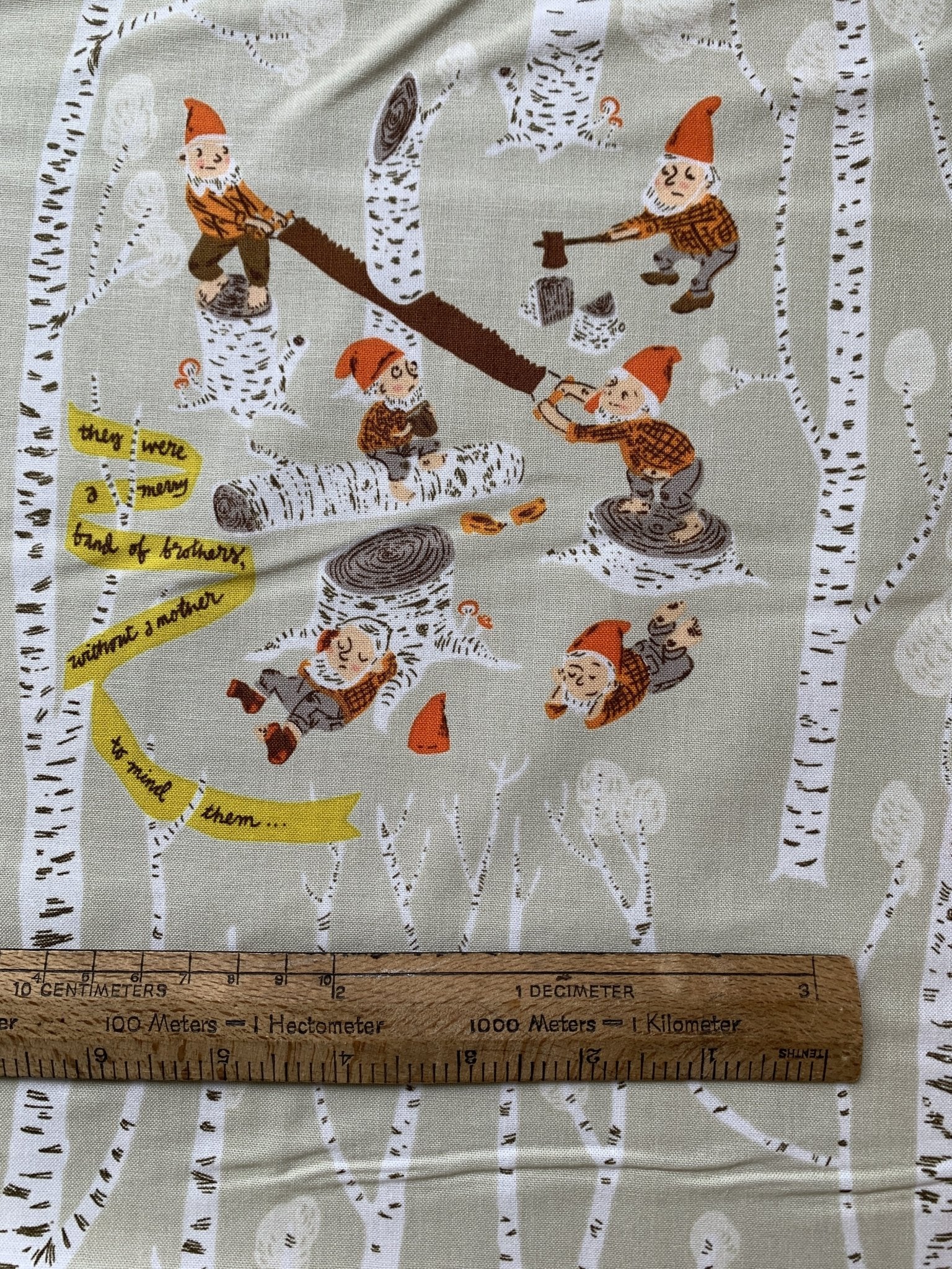 Please note that this has a 24"/62cm repeat.  To get the whole print you would need to purchase 3 units (75cm). One quarter may not give you a full image of Snow White.