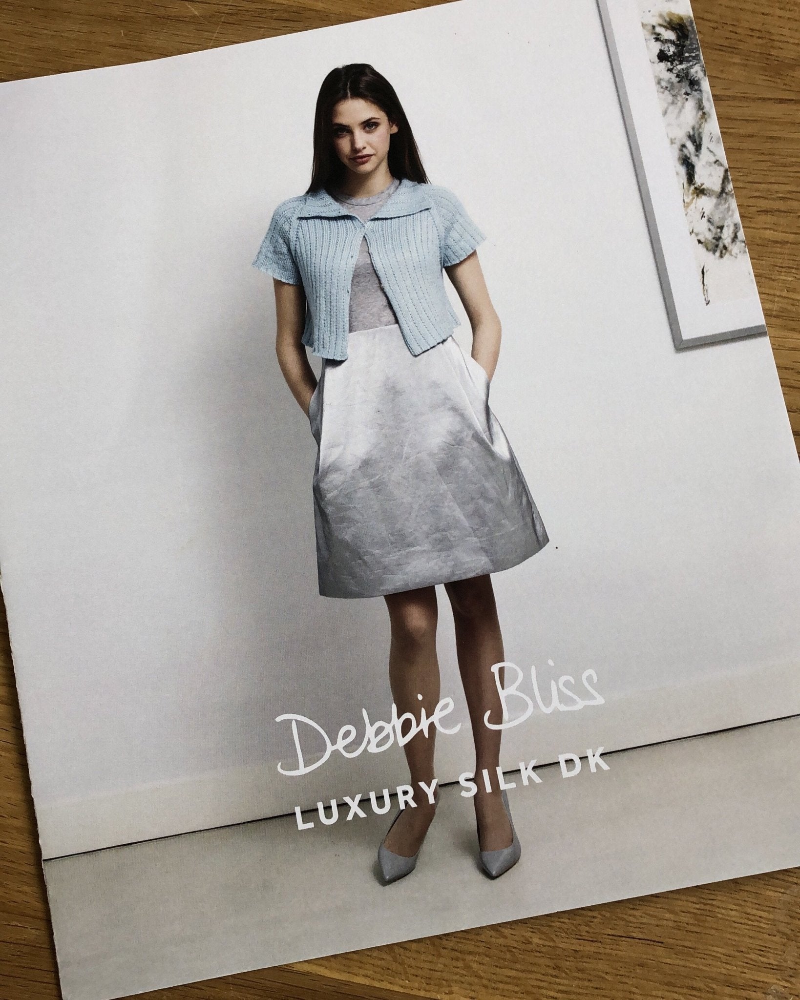Knit yourself a cropped cardigan in Debbie Bliss Luxury Silk yarn (DK).
