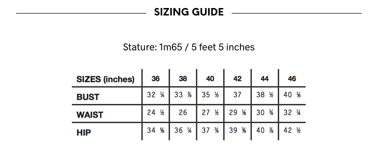 Sizes: 36 to 46