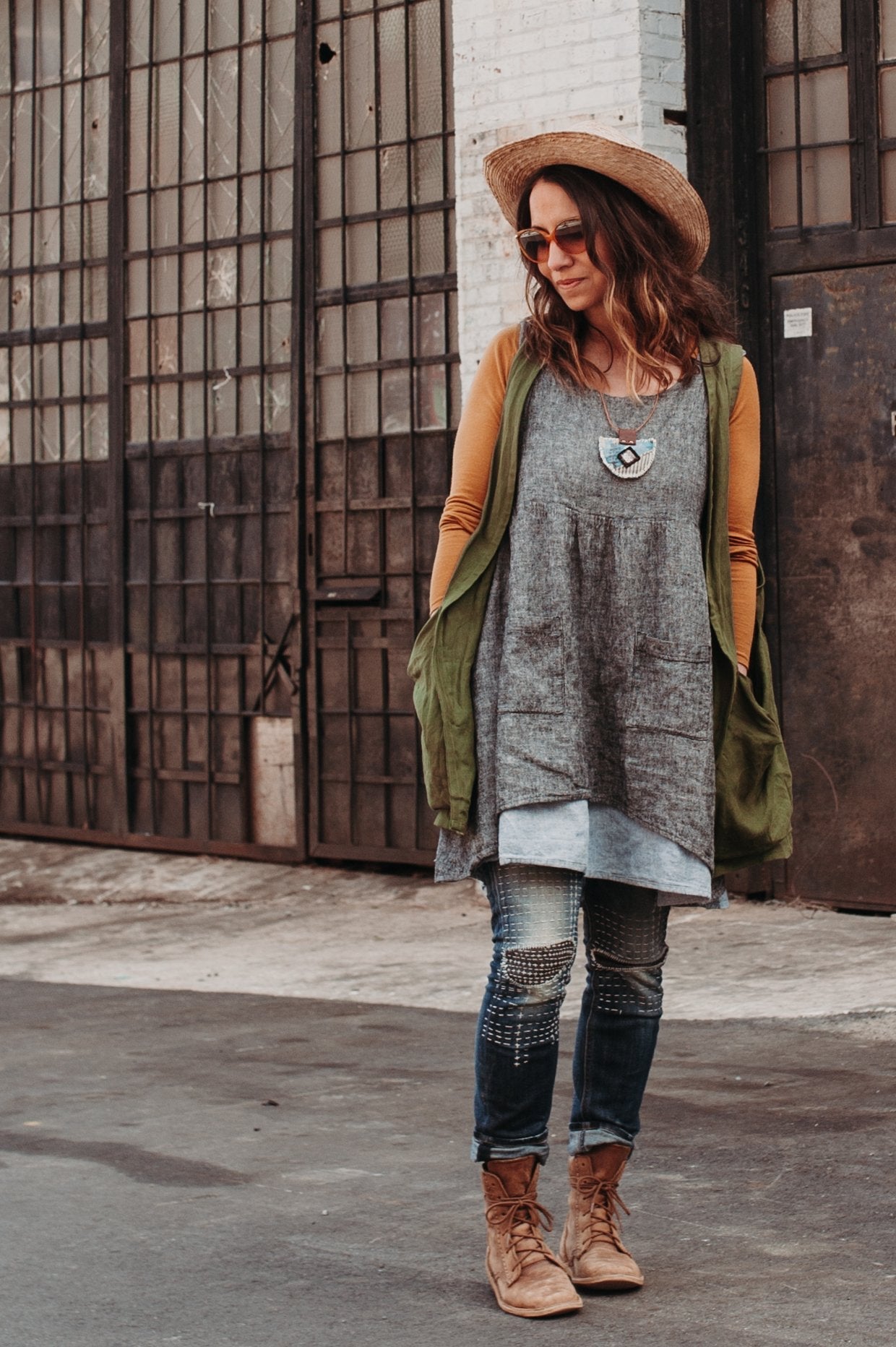 The Forager Vest is designed in honor of those who harvest by hand - be it wild edibles, garden vegetables, eggs, or a child’s treasures from nature. The pockets are deep, and the style is simple. Wear the Forager over a dress, jeans, leggings, or a skirt for an instant utilitarian boost to any outfit. Bonus - you can fit knitting or handwork projects in the pockets without having to carry around a project bag!