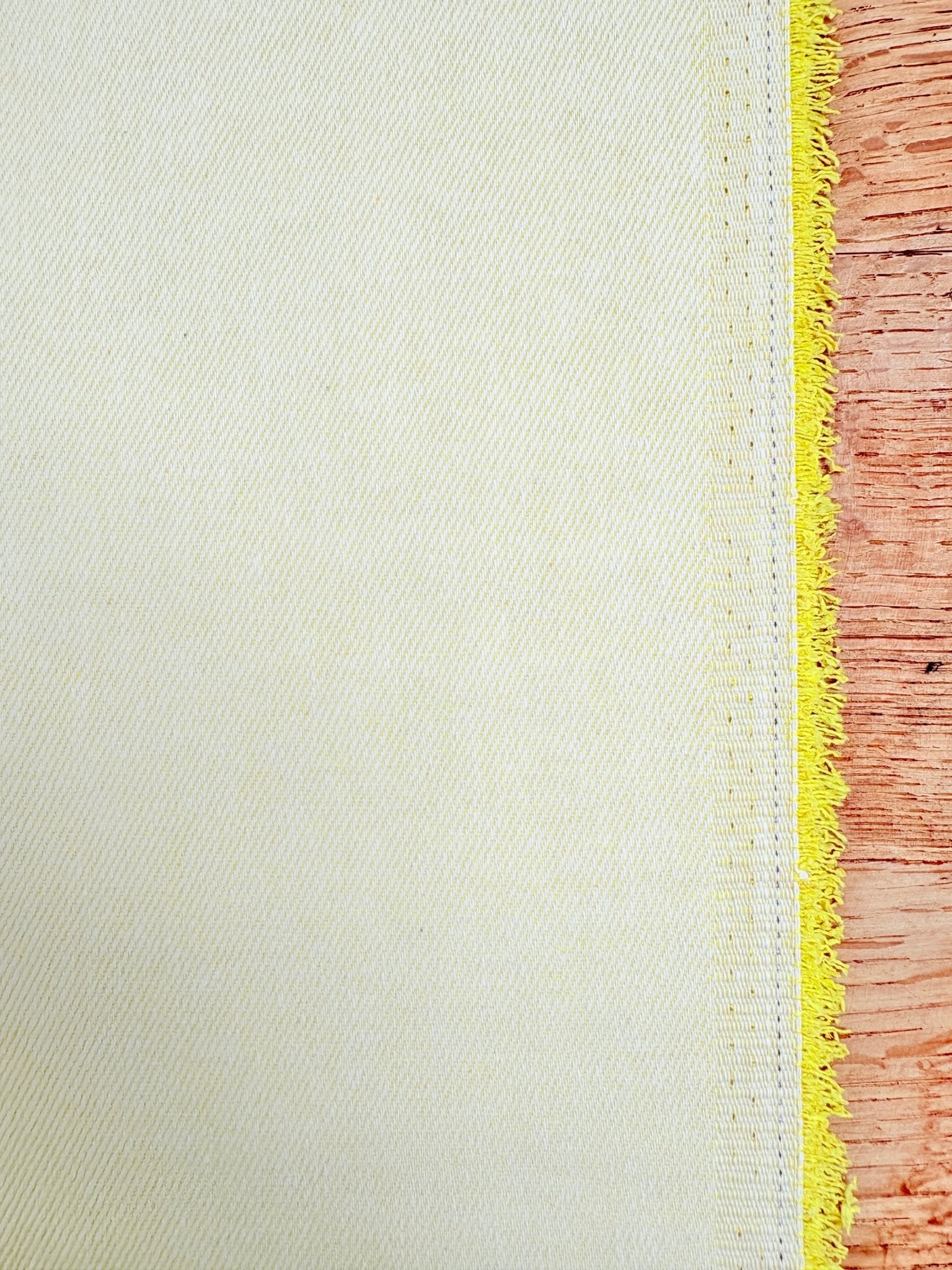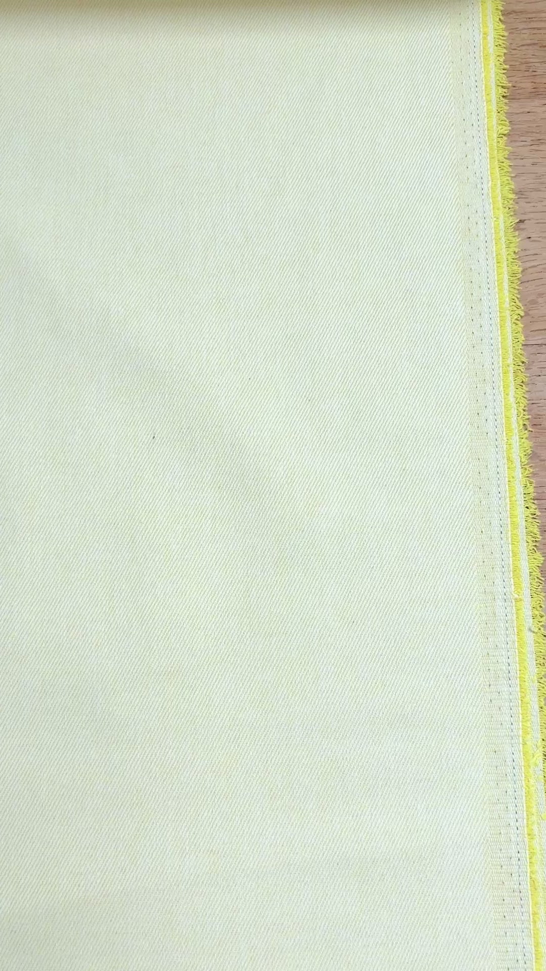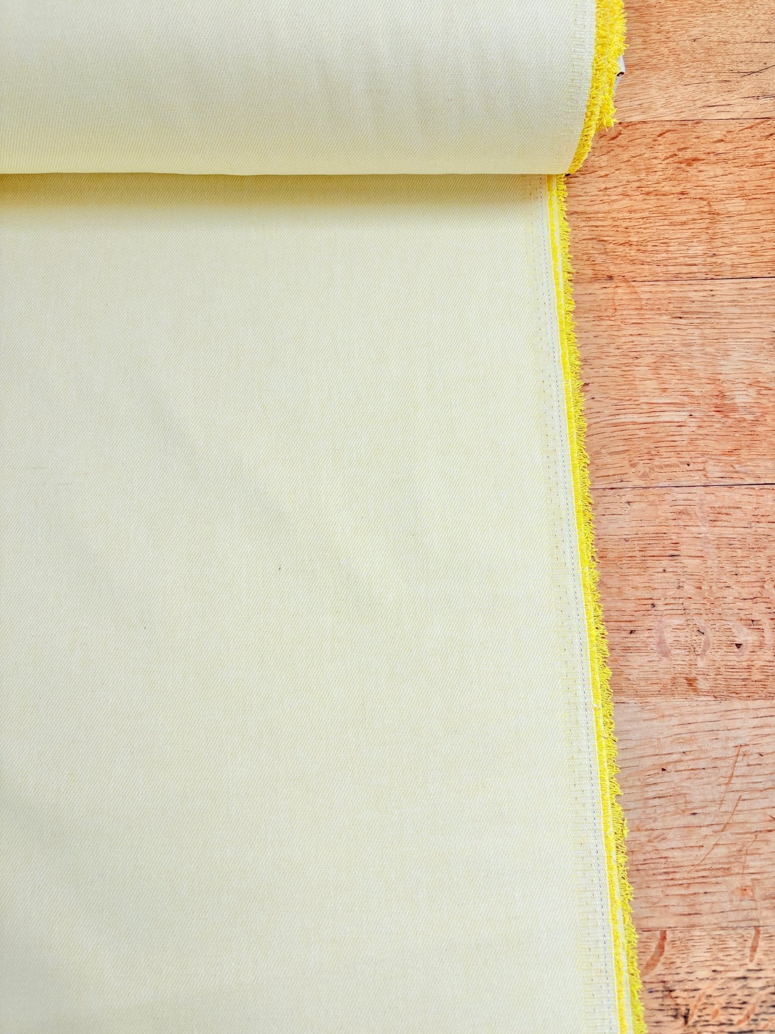 This is a midweight denim with no stretch. The right side has a white and colour twill, with the 'wrong' side being the darker tone - use both sides for a fantastic mix and match outfit!
