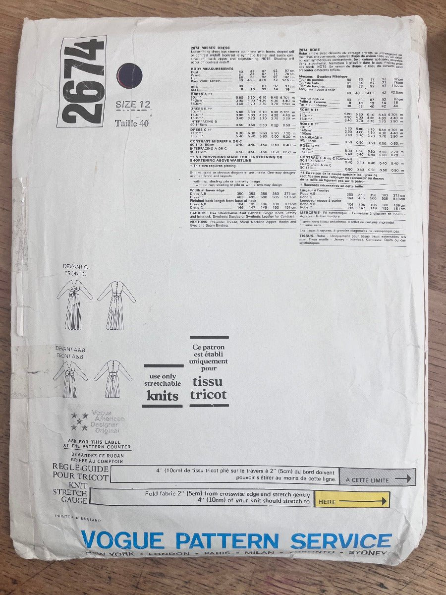 This is a vintage sewing pattern that has been checked for you - it is complete (please note the vogue fabric label is not included).