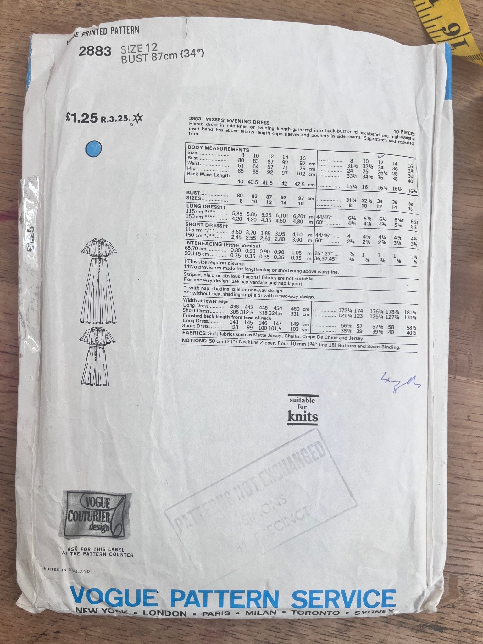 This is a vintage sewing pattern that has been checked for you - it is complete (please note the vogue fabric label is not included).